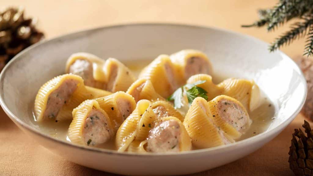 La receta más típica de estas fechas. Se prepara con un caldo de carne y galets rellenos de picadillo, que aportan cuerpo y textura. Es una sopa festiva, más elaborada que la versión cotidiana, y marca el inicio de muchas comidas familiares.